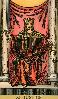 Amor: Esta carta te indica que es un muy buen momento para que la pareja se estabilice vuelve la armonía y el equilibrio, quizá tras u período algo borrascoso, lo único importante cuando sale la Justicia es que se deben apegar al camino de la verdad si estas sin pareja tal vez debas pensar cuidadosamente y sabiamente antes de sacar cualquier conclusión y emitir un juicio si aparece alguien en tu vida.